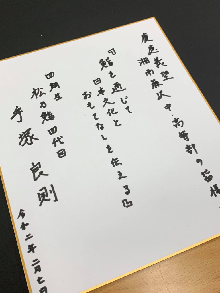 慶應義塾湘南藤沢中等部にて講演 2020.02.08 | 活動レポート 慶應義塾湘南藤沢中等部(SFC)にて開催された「福沢諭吉講演会」に登壇し、「鮨を通じて日本を紹介する」「食で世界をつなぐ」をテーマに講演を行いました。 1992年のSFC中等部開校とともに入学した一期生として、母校での講演は特別なもの。恩師の先生方、そして現在の生徒たちの前で話すことに強い感慨があり、あらためて「これからの自分の歩みに責任と気持ちを込めよう」と背筋が伸びる思いでした。 今回の講演も、聴講者の年齢や空気感に合わせて構成をアレンジ。壇上から降りて直接語りかける“巻き込み型”スタイルで進行し、質問も相次ぐなど大いに盛り上がりました。 プレゼンテーションでは、慶應義塾の理念である「独立自尊」「気品の泉源」「自我作古」「社中協力」を軸に、自身の経験や海外での鮨文化の伝え方、職人としての姿勢などをお話ししました。 当日は18期卒業の永谷くんも特別出演し、ともに「鮨」という日本文化の可能性を共有する時間となりました。 多くのご縁に感謝しております。 WHAT WE CAN DO 学校・教育機関での講演 国際理解教育・日本文化プログラムの企画 食・文化をテーマにした特別授業 生徒参加型のワークショップ 進路・キャリア講話 このページをシェア 関連記事 2020年6月24日 富裕層インバウンド WEB講演(株式会社MATCHA主催オンラインセミナー登壇) 2020年6月1日 学研『よいこの学習』2020年6月号に掲載 2020年2月3日 東京クラブ「総合芸術としての日本の『鮨』を通じて日本を紹介する。」講演 2019年12月11日 美食倶楽部「握り、味わい、一貫の裏側を体感する会」を開催 2019年12月11日 田園調布学園にて『鮨を通じて、日本文化を伝える』講演
