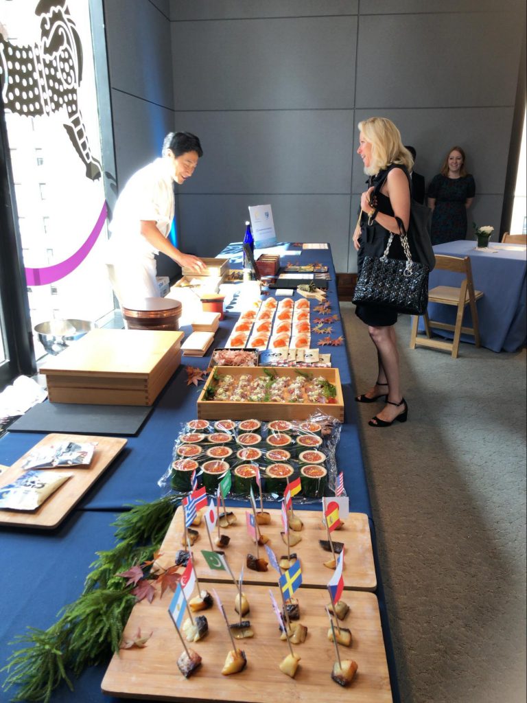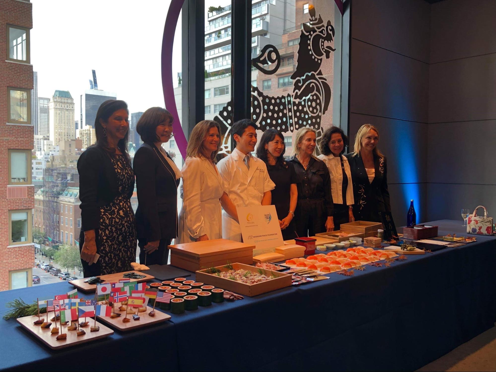 国連総会ウィーク 海洋保全シンポジウムにて鮨ケータリングを提供(ニューヨーク) 2019.09.24 | 活動レポート 2019年9月、国連総会会期中にニューヨークの Asia Society にて開催された「High Level Conversation with First Ladies and World Leaders on Ocean Conversation(海洋保全に関するハイレベル会合)」の昼食会において、鮨ケータリングをご提供しました。 この会合は、海洋資源の保全と持続可能な社会の実現をテーマに、世界各国の首脳夫人・国際機関の代表者が参加し議論を行う国連関連企画です。日本からは安倍昭恵総理夫人がホストを務め、環境問題・海洋保全に関する国際的な取り組みが紹介されました。 松乃鮨では、本企画の趣旨に合わせ「サステナブルシーフード」を軸にした鮨メニューを構成し、和の装飾や漆芸蒔絵の器を取り入れ、日本文化を感じていただける食空間をコーディネートしました。 シンポジウムの内容 イベントは、Asia Society CEO Josette Sheeran 氏によるウェルカムスピーチに始まり、David Rockefeller Jr. 会長の挨拶、安倍昭恵夫人のキーノートスピーチ、G20大阪配偶者プログラムでのシンポジウム紹介映像などが続きました。 続くパネルディスカッションでは、・スーザン・ロックフェラー氏(Oceana)・マリア・ダマナキ氏(ネイチャー・コンサーバンシー/元欧州委員会)・Olai Uludong 氏(パラオ常駐代表)・Doug McCauley 氏(海洋科学研究所 准教授)・角南篤 氏(海洋政策研究所 所長)などが登壇し、海洋保全に向けた国際的視点から意見交換を行いました。学生による未来への提言も紹介され、幅広い視点での議論が展開されました。 サステナブルシーフードランチの提供 昼食会では、本企画の趣旨に合わせた 「サステナブルシーフードランチ」 をテーマに、ブルーシーフードガイドに沿った食材を用いた鮨メニューを考案し提供しました。 日本の文化を感じていただくため、・漆芸蒔絵 人間国宝 室瀬和美氏の漆器・和の装飾・世界各国の国旗を取り入れた演出なども用意し、海洋資源と多様な文化のつながりを表現しました。 参加者の皆様は、鮨を囲みながら交流を深め、和やかな雰囲気の中で議論が一層活発になりました。 取り組みへの評価と今後 国際的な場で日本の食文化を紹介する貴重な機会をいただけたことに深く感謝しております。松乃鮨は ブルーシーフードパートナー として認定され、持続可能な海洋保全にも継続的に取り組んでいます。 今回の経験を活かし、・国際イベント・国家行事・企業のレセプション・海外ゲスト向け日本食文化体験など、多様な場において“鮨を通したおもてなし”を提供してまいります。 お問い合わせも随時承っております。 参考:企画団体について Sailors for the Sea(セイラーズフォーザシー) 2004年に David Rockefeller Jr. 氏が設立した海洋環境保全のためのNGO。アメリカズカップ公式サステナビリティパートナー、世界銀行の Global Partnership for Oceans 公式スポンサーとしても知られ、国際的に高い評価を得ています。Seafood Watch(モントレーベイ水族館)の公式パートナー。 Asia Society 1956年に John D. Rockefeller III 氏が設立した非営利組織。アジアに関連する芸術、教育、ビジネス、政策などの分野で知見を提供し、各国の協力を促進する国際的文化機関。 このページをシェア 関連記事 2025年11月21日 オーストリア・スキーワールドカップ|五つ星ホテル主催レセプションでの鮨提供 2022年11月30日 インド日本大使館でふるまった野菜鮨 — 日本の野菜で伝える食文化 2021年2月9日 MSC・ASCのCoC認証を取得 老舗鮨店として、海の未来を守る取り組みを推進 2021年2月3日 食のアドバイザー業務『鮨』『インバウンド経験』『伝統のおもてなし』を活かした地方創生プロジェクト(静岡県・伊東/伊豆高原) 2020年9月2日 世界初MSC認証の大西洋クロマグロを松乃鮨が購入。 みなと新聞、水産経済新聞他、業界新聞に掲載