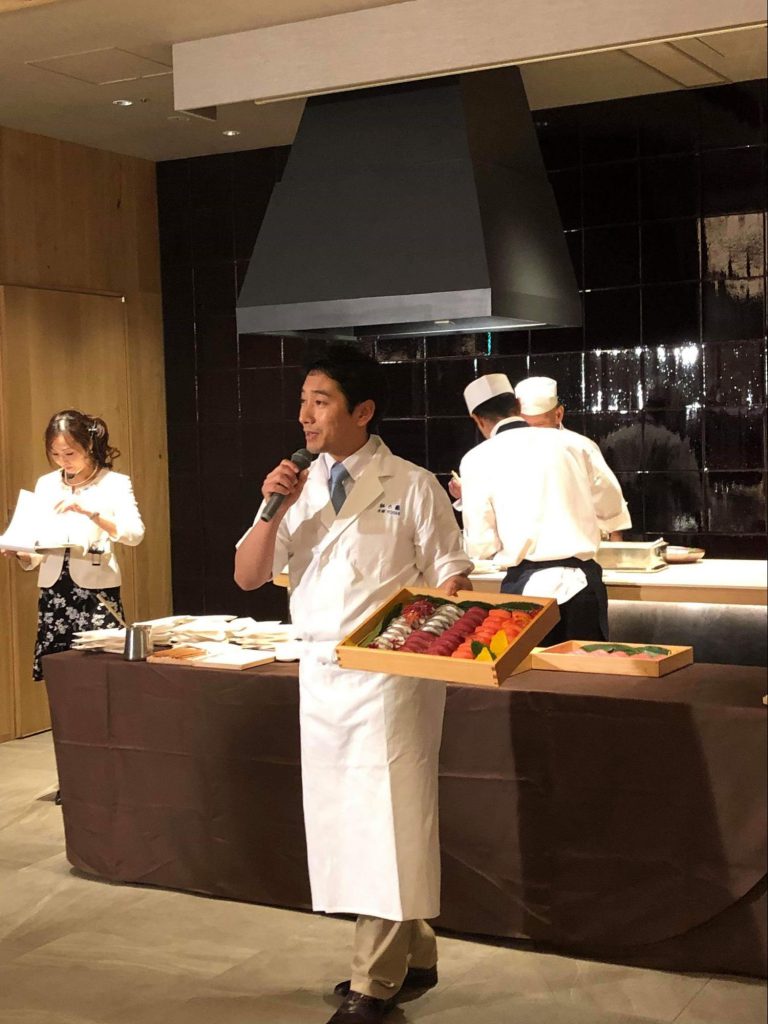 江戸東京きらりプロジェクトで新作江戸料理を提案(キッコーマンライブキッチン) 2019.11.16 | メディア掲載, 活動レポート 2019年11月16日(土)、東京都が推進する「江戸東京きらり」プロジェクトの一環として、有楽町「KIKKOMAN LIVE KITCHEN TOKYO(キッコーマンライブキッチン東京)」にて開催されたイベントに参加し、「Old meets New(新しい江戸)」をテーマに新作の江戸料理を提案しました。当日は100名を超える来場者にお寿司をご提供させていただきました。 日本料理アカデミー東京運営委員会(理事長:「菊乃井」村田吉弘)のメンバーとして参加し、 麻布十番『総本家更科堀井』9代目 堀井良教氏 神楽坂『天孝』2代目 新井均氏 赤坂 近茶流嗣家・柳原料理教室副主宰 柳原尚之氏 の皆様とともに、新しい江戸料理の形を考案いたしました。 小池都知事始め、東京きらりのメンバーと一緒に 村田理事長と。 イベントで提案した握り イベントテーマに沿って、3種類のお寿司をご提供しました。 ・コハダの握り・まぐろのづけ江戸前の伝統技法を用いた“江戸”のお料理として提供しました。 ・トマトの甘酢漬けの握り東京が国際都市として多様化する未来を見据え、ベジタリアンの方でも楽しめる“東京”のお料理として制作しました。 トマトの握り また、松乃鮨の名物である「穴子の握り」は、羽田沖の穴子を使用し、代々受け継がれてきたタレとともにご紹介しました。江戸から東京へつながる歴史と技が込められた一品として、多くのお客様に召し上がっていただきました。 松乃鮨名物「穴子の握り」 会場の様子・参加者 イベント当日は、小池百合子東京都知事をはじめ、「江戸東京きらり」プロジェクトの参加メンバーが来場されました。 また、 組紐「龍工房」福田氏 「京源」波戸場承龍氏・耀次氏 慶長元年創業、東京最古の酒蔵「豊島屋本店」 など、伝統を受け継ぎつつ新たな挑戦を続ける方々も参加。伝統の枠にとらわれない多様な取り組みが紹介され、刺激に満ちた場となりました。 途中、来場者の皆様に向けて、海外での活動を含めた松乃鮨の取り組み、「鮨」を通じて日本文化とおもてなしを伝える活動についてもご説明させていただきました。 WHAT WE CAN DO 本イベントを通じて、松乃鮨が提供できる価値として、以下のような取り組みが可能です。 テーマに沿った鮨/和食コンセプトの企画・提案行政・企業・イベントのテーマに合わせ、新たな握りや江戸料理の再構築など、文化性のあるメニューを開発します。 伝統技法と現代性を融合したメニュー制作江戸前鮨の技術を基盤にしつつ、多文化・多様な食習慣に対応する創作鮨の開発が可能です(ベジタリアン対応など)。 100名規模以上のライブキッチン・対面提供今回のような100名超の来場者に対して、ライブでの鮨提供や説明を交えた演出を行うことができます。 日本文化紹介やゲスト向けのプレゼンテーション鮨の歴史・食材・伝統工芸との関係を、国内外のゲストにわかりやすく解説する文化発信型プレゼンテーションが可能です。 行政・伝統工芸・食文化プロジェクトとの連携企画「江戸東京きらり」のような文化プロジェクトにおいて、食を軸とした企画協力やイベント出展にも対応します。 今後も「鮨」「食」を通じて、日本や東京が持つ素晴らしさや歴史を国内外に伝えてまいります。また、イベントテーマに沿った料理表現をより明確に届けられるよう、引き続き精進していく所存です。 このページをシェア 関連記事