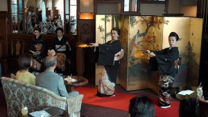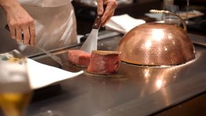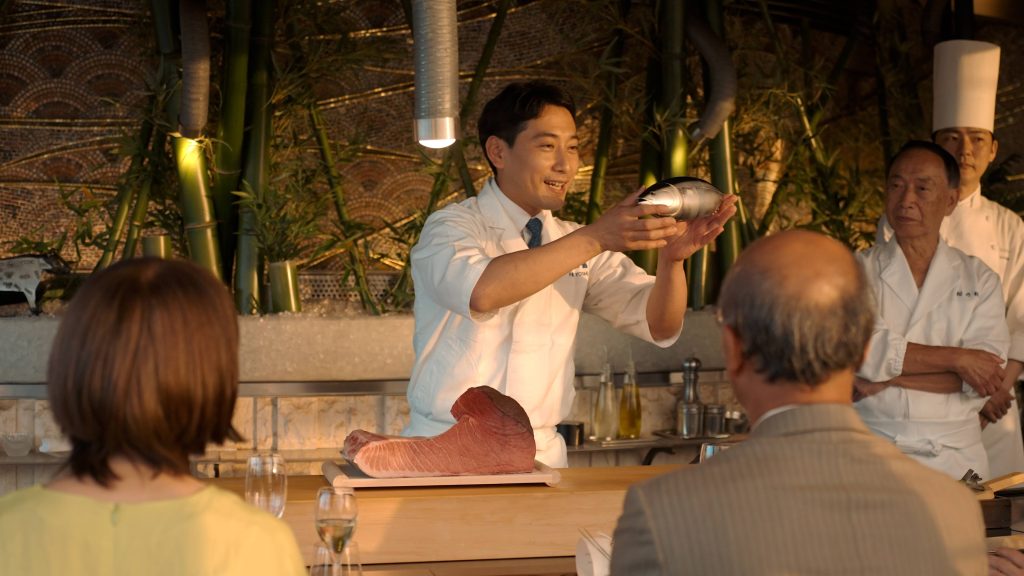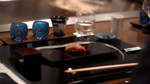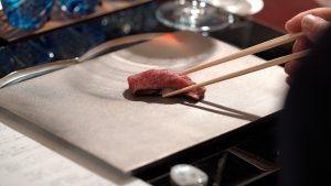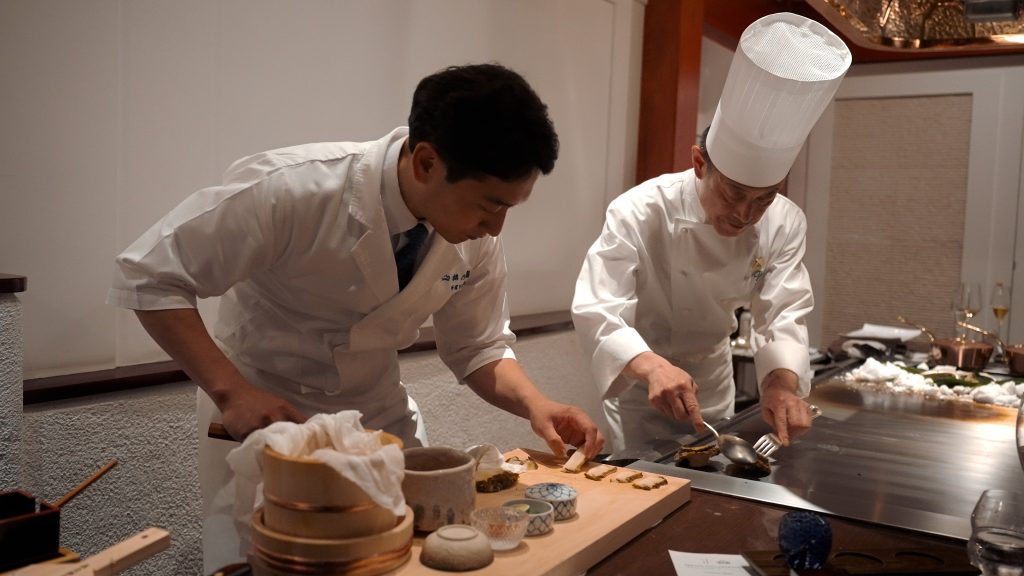 表参道うかい亭×松乃鮨 鉄板料理と鮨が織りなす一夜限りの饗宴 2024.06.30 | 活動レポート 日本を代表する鉄板料理の名店「うかい亭」よりゲストシェフとして招かれ、表参道うかい亭にて一夜限りのコラボレーションディナーを開催しました。本企画は、うかい亭創立60周年を記念した特別イベントのひとつとして行われ、日本のブランド食材を使った和文化のつどいをテーマに、鉄板料理と江戸前鮨の技法を融合させた特別な夜となりました。 宴のはじまりは、うかい亭の総料理長によるお肉の解説から。続いてYOSHIが、マグロをはじめとする魚介や食材の部位、調理法について語り、お客様の前で実際に150kg級の本マグロを鉄板で焼き上げ、うかい亭特製のポン酢で味付けを行いました。両シェフが食材を持ち寄り、4カ月にわたり重ねた打ち合わせとリハーサルの末に完成した、一夜限りの特別メニューが提供されました。 そのほかにも、うかい亭のシグネチャーであるアワビの岩塩蒸しを鮨として提供したり、鉄板で焼いたお肉を握りにしたり、松乃鮨から持ち込んだ煮タコやカニ味噌をうかい亭の料理に合わせるなど、互いの料理哲学を尊重しながら新しい表現に挑みました。 また、料理に合わせた日本酒ペアリングを用意し、ラウンジでは4名の芸者による舞が披露されました。料理、酒、芸とともに、日本ならではのもてなしと文化を味わう特別なひとときをお届けしました。 WHAT WE CAN DO 料理で日本文化を表現する。異文化理解に長けたYOSHIが、鮨を通じて日本の食文化を語り、フレンチなど異ジャンルの料理と融合させることで、日本の食材と文化の魅力を発信します。 日本酒ペアリングと芸者によるおもてなし。ソムリエ資格を持つYOSHIが料理ごとに日本酒をペアリング。芸者によるお迎えや舞など、日本の伝統芸能を組み合わせた演出も可能です。 異ジャンルとのコラボレーションを通じた新たな創造。鉄板料理、フレンチ、イタリアンなど、異なるジャンルとの共演を通して、互いの技法と文化をリスペクトしながら新しい料理表現を生み出します。 コラボレーション実績 表参道「うかい亭」× 松乃鮨 — 鉄板料理と江戸前鮨で嗜む和文化のつどい 広尾「LA BISBOCCIA」× 松乃鮨 — イタリアンと鮨 神楽坂「天孝」× 松乃鮨 — 天ぷらと鮨 このページをシェア 関連記事 2020年7月18日 公益財団法人東京都観光財団 東京のラグジュアリー体験として「寿司体験握り」を紹介 2020年3月4日 ショパール様 出張握り at 小田原文化財団 江之浦測候所 2020年2月22日 ダンヒル様 銀座本店イベントにて出張握り 2017年1月14日 キッコーマン「江戸の食文化と料理サロン」|鮨の実演講習(2017)